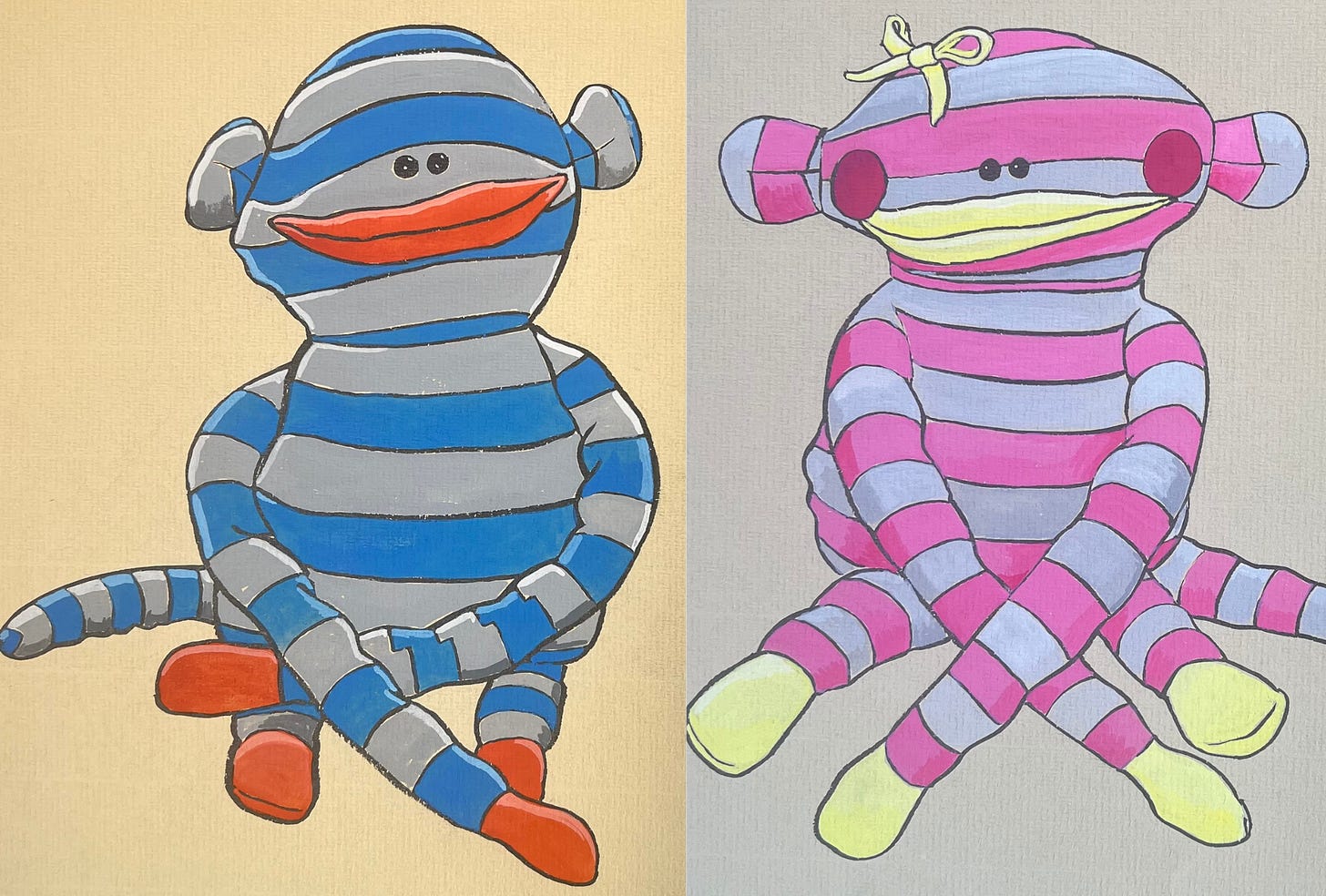 Once I get an idea, no matter how absurd, it’s getting done: some years ago I made two beautiful monkeys out of striped pyjamas that my kids had outgrown. The girl monkey had hot pink and pale grey stripes with yellow lips and, and the boy monkey had royal blue and pale grey stripes with burnt orange lips. I sketched them, and even wrote and illustrated a recipe starring them as the cooks. A lot of time and effort went into this and no one liked them at all when I posted them on social media. I realised that just because I think something is incredible, the world doesn’t necessarily agree: this way of testing the waters of public opinion is just one of the myriad ways in which social media is useful.